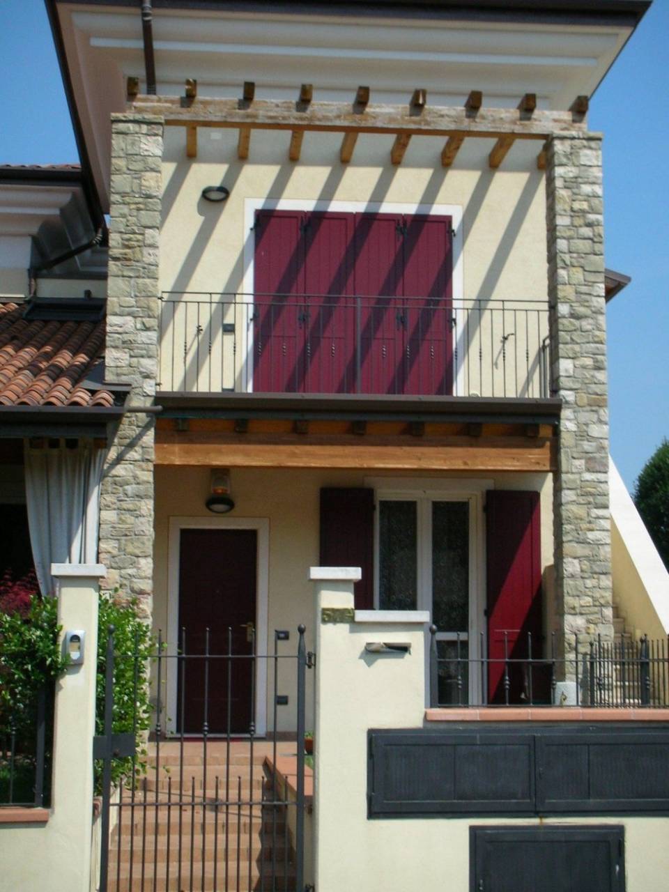 Nuova costruzione - Travagliato (BS). Fornitura infissi in PVC bianchi, persiane in alluminio laccate Bordeaux, portoncini blindati con pannellature esterne in PVC, porte interne e battiscopa in tinta.