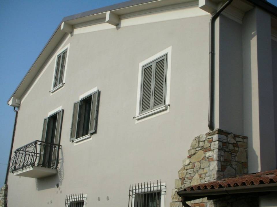 Nuova costruzione - Concesio (BS). Fornitura e posa di finestre e porte in pvc bianco, persiane in alluminio laccate verdi, portoncini blindati con pannellature esterne in pvc verde.