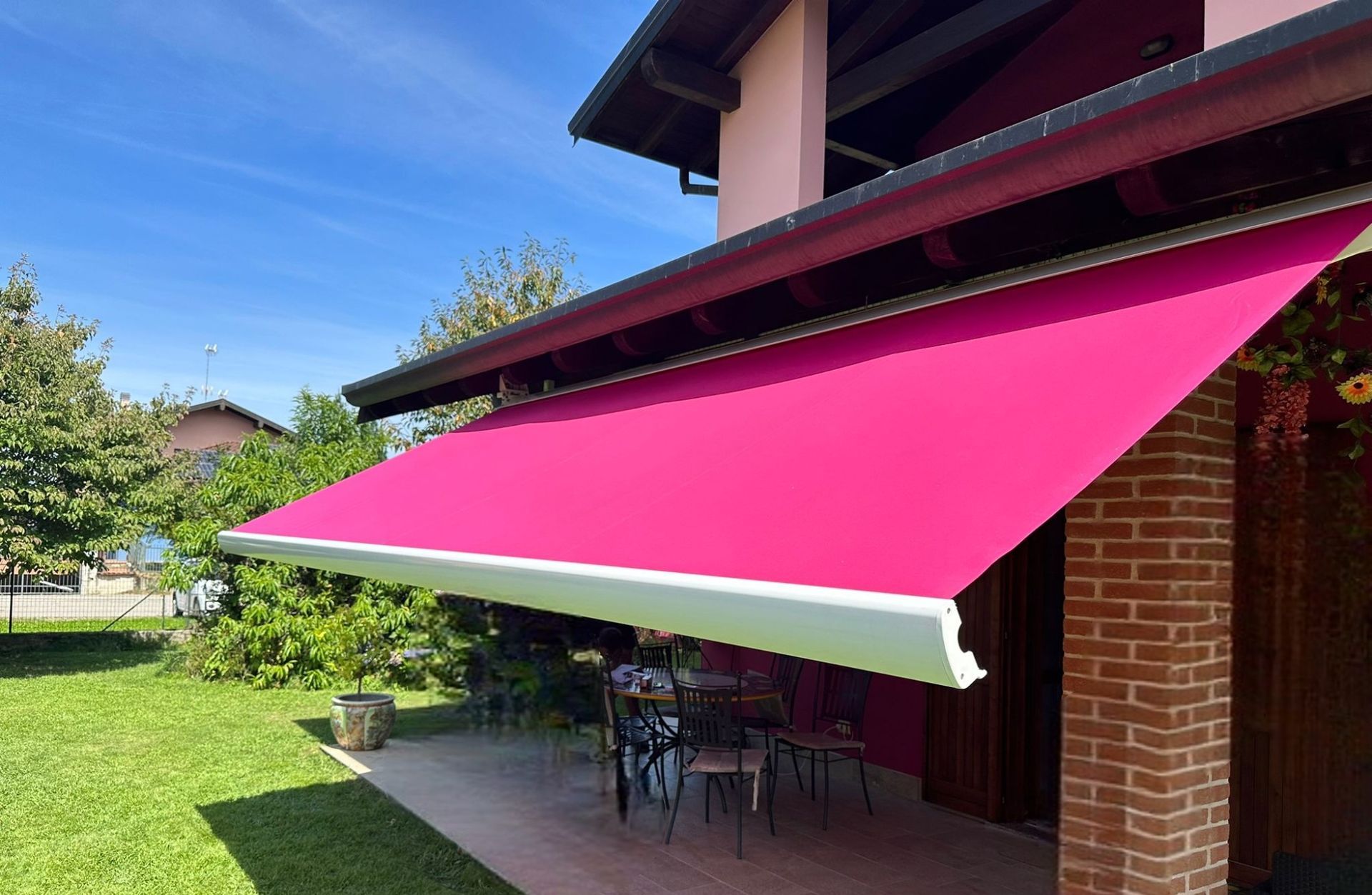 Tessuti con colori esclusivi in dralon acrilico idrorepellente o poliestere impermeabile. Rifiniture e volants in vari colori, disegni garantiti, personalizzazioni a richiesta.