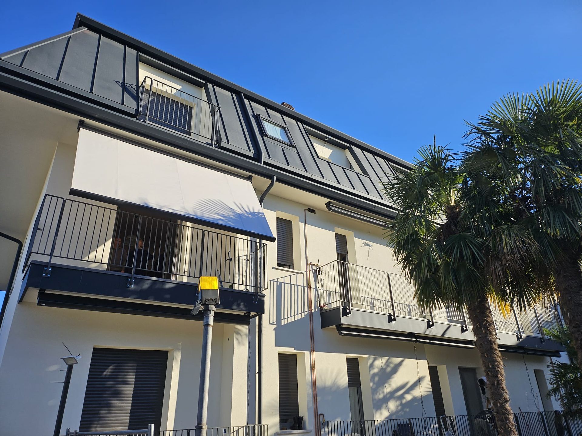 Le Tende da sole a bracci della Bap sono costruite su misura. Funzionamento mediante argano demoltiplicatore manuale o con motore. Dispositivi automatici di salita e discesa in caso di vento e pioggia. Strutture autoportanti in alluminio laccato e particolari in alluminio pressofuso.