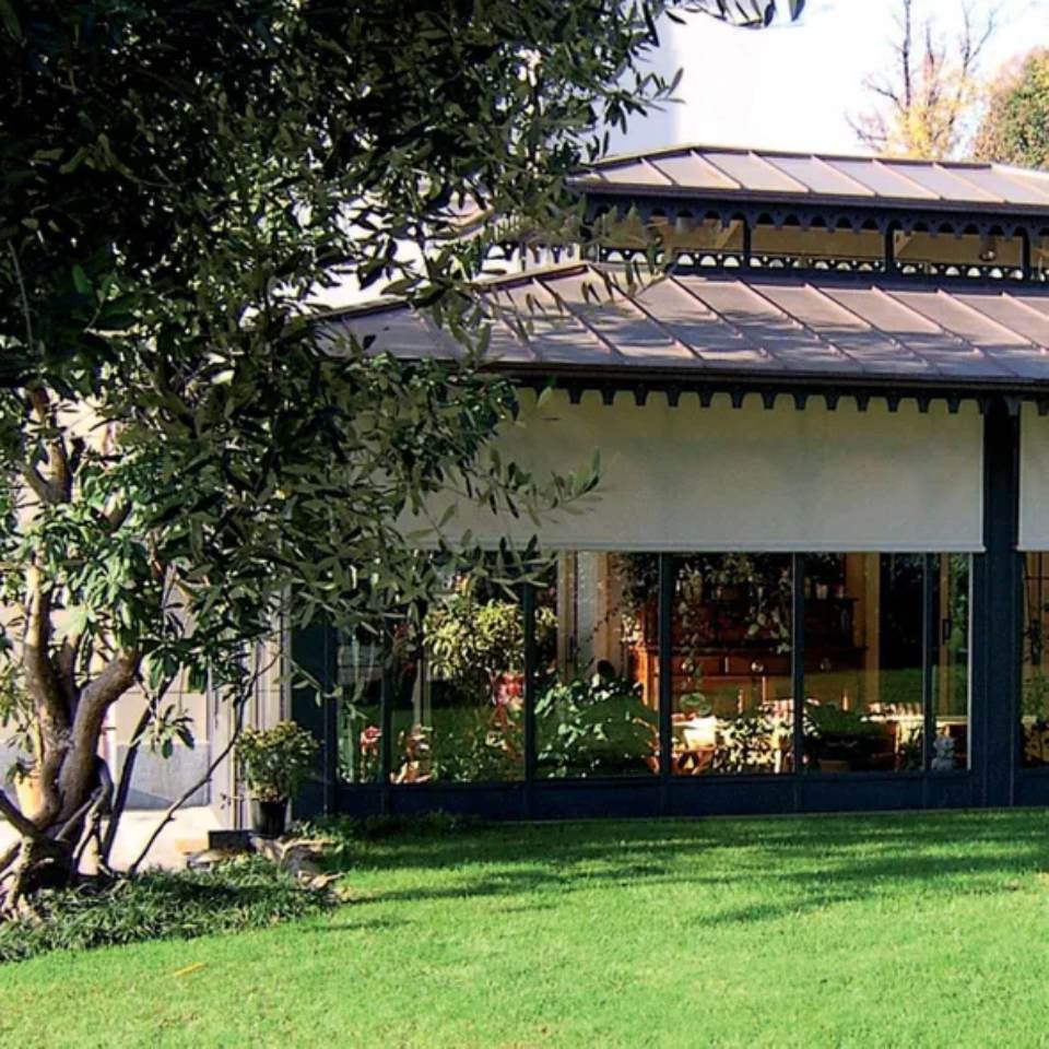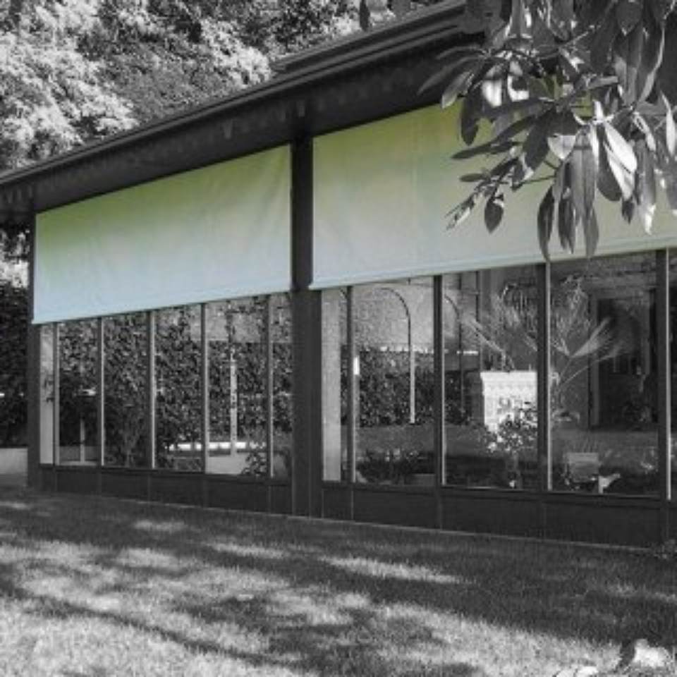 Le tende da sole a caduta della Bap sono costruite su misura. Funzionamento mediante argano demoltiplicatore manuale o con motore. Dispositivi automatici di salita e discesa in caso di vento e pioggia.