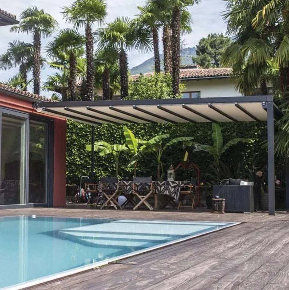 Strutture ideali per trasformare il vostro spazio esterno in un elegante spazio coperto. Queste stutture permettono di lasciare le lamelle chiuse per riposare all’ombra, socchiuse o aperte per godersi il sole pomeridiano. Queste strutture possono dare un tocco di unicità e qualità al classico pergolato, integrandoli con tende oscuranti, luci led o riscaldamento.